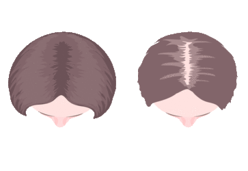 Žene koje pate od androgene alopecije najčešće iskuse opadanje kose, a proređivanje može početi u ranim godinama. Za razliku od muškaraca, opadanje kose počinje centralno, a zatim se širi.